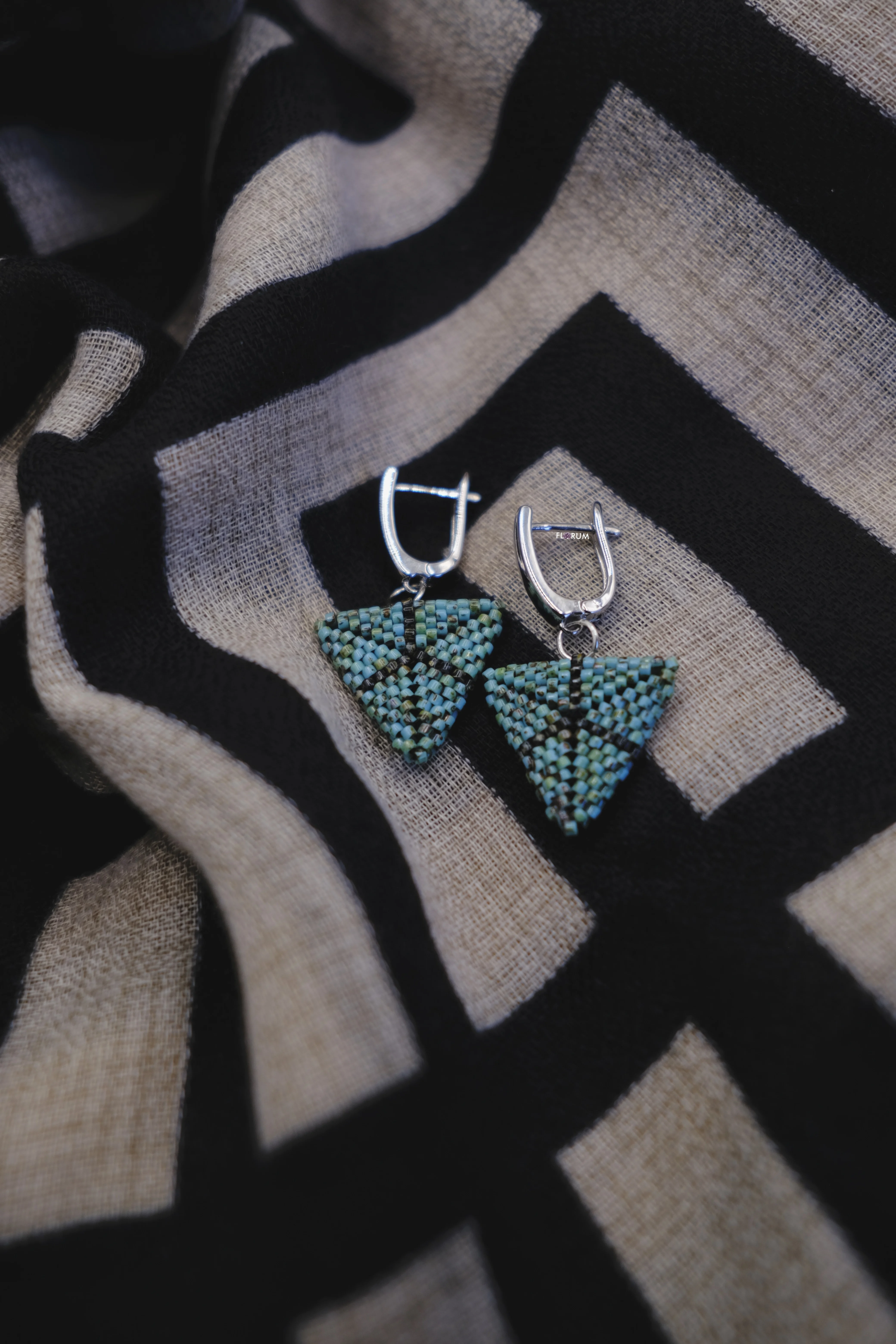 Blue Geometric Beaded Earrings - Silver plated