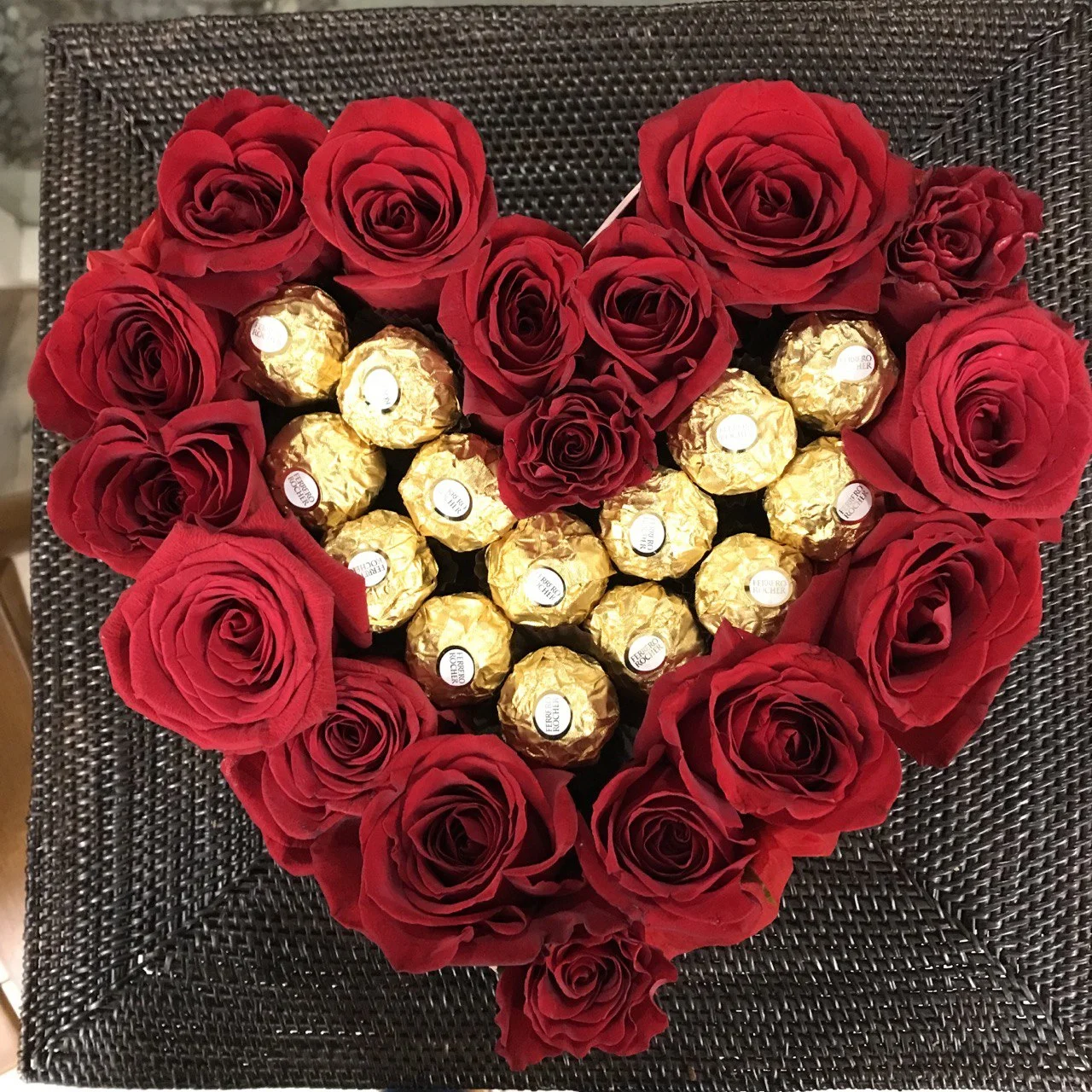 This elegant heart-shaped arrangement combines rich red roses with decadent Ferrero Rocher chocolates, creating the perfect gift for romantic occasions, anniversaries, or Valentine’s Day. Ideal for those seeking a luxurious yet thoughtful present, Mini Heart of Gold is a beautiful way to express love and affection. Whether you're celebrating a special moment or surprising someone just because, this floral and chocolate heart box adds a touch of sweetness and sophistication to any occasion