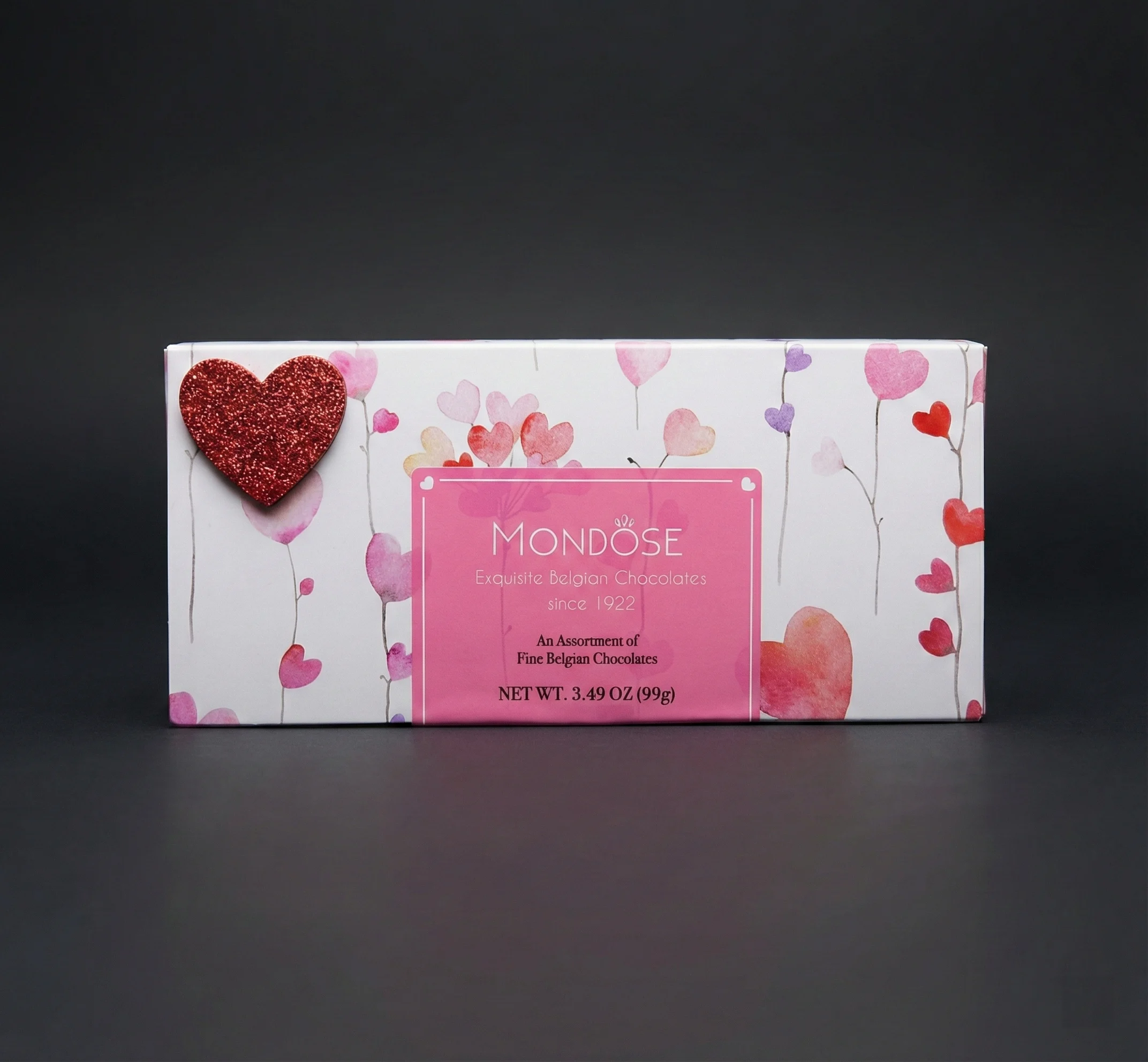Mondose Exquisite Belgian Chocolates, a premium 8‑piece assorted chocolate gift box made in Belgium since 1922. This beautifully designed 3.49 oz (99 g) box features a romantic heart pattern and a vibrant pink label, making it an ideal Valentine’s Day chocolate, anniversary gift, birthday present, or thank‑you gift for chocolate lovers.