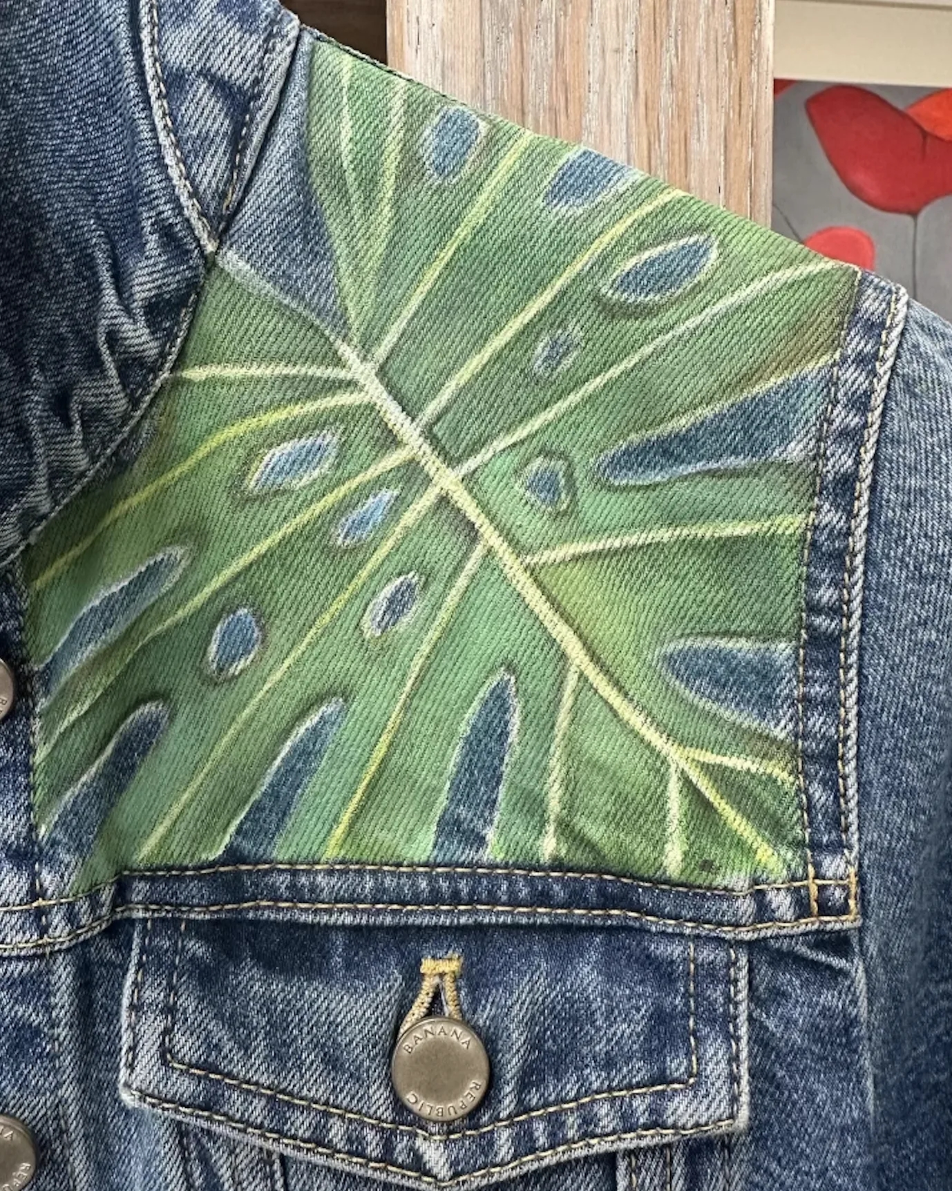 Monstera Painted Denim Jacket Size SMonstera Painted Denim Jacket Size S