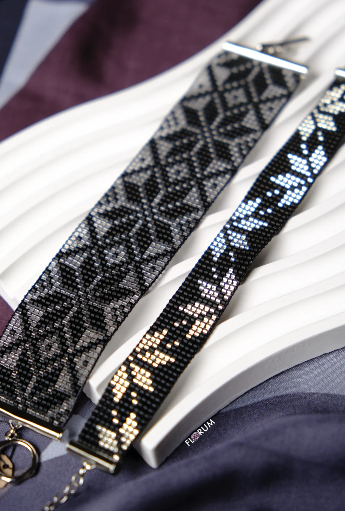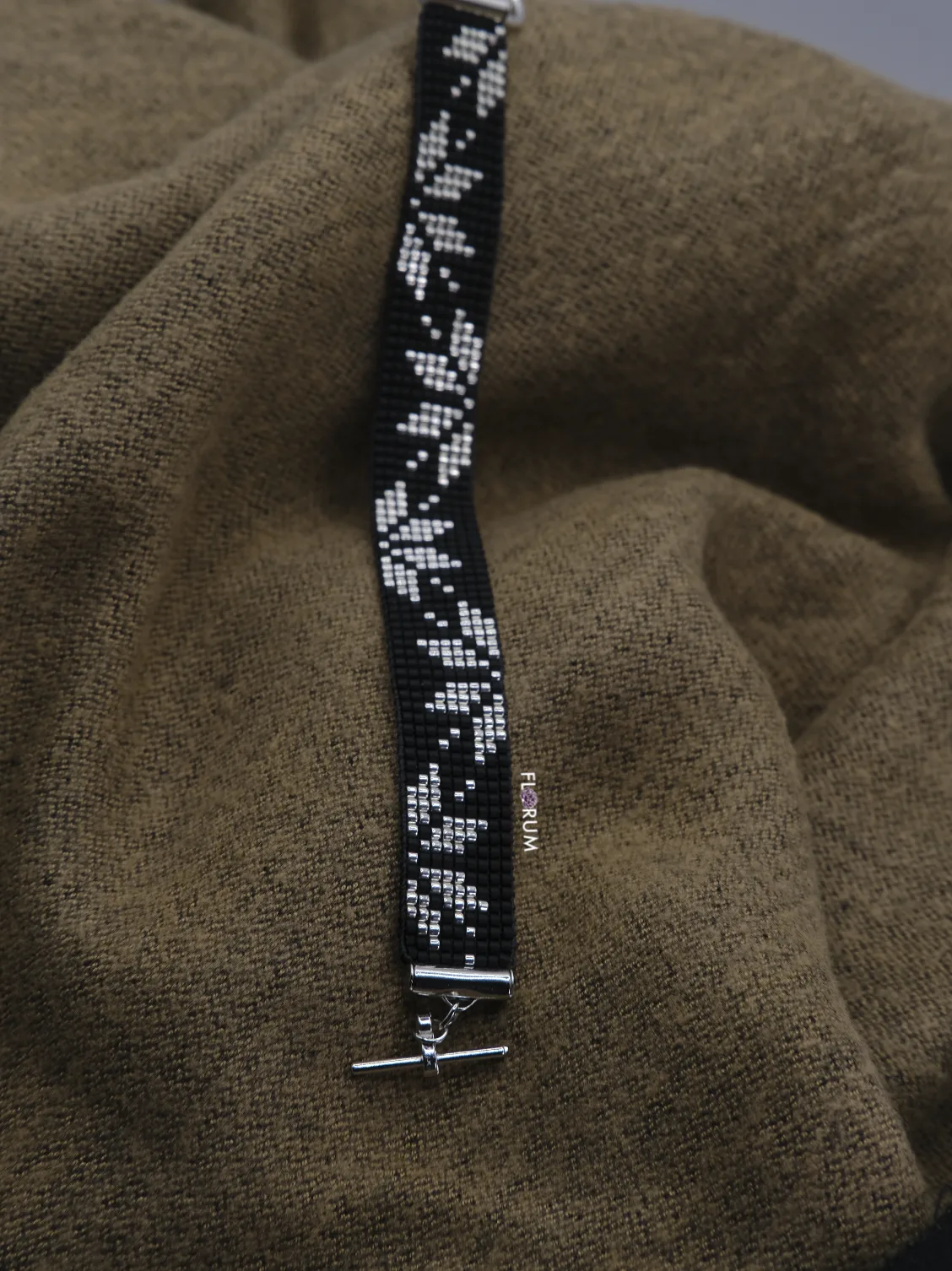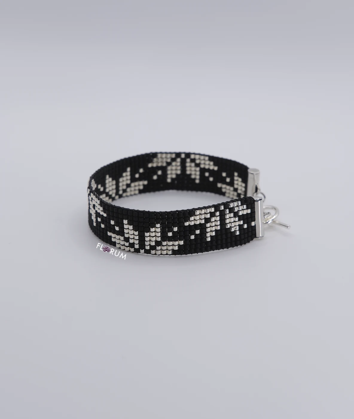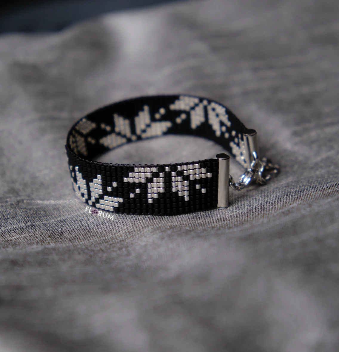 Gerdan - Ukrainian style Silver and Black Pattern Beaded Loom Bracelet Seed Bead Bracelet