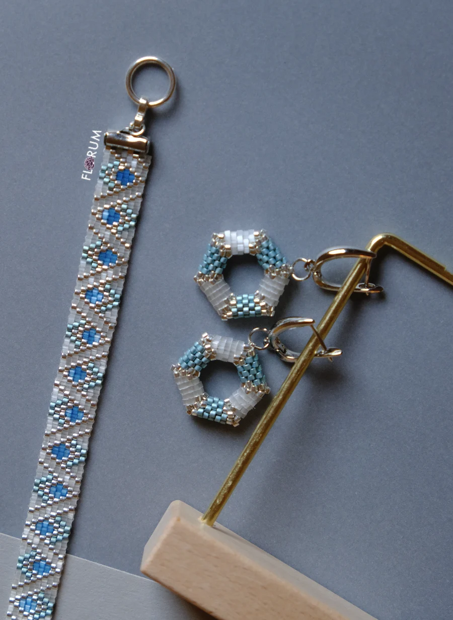 Snow Diamond: beaded bracelet and congo earrings (set of 2)