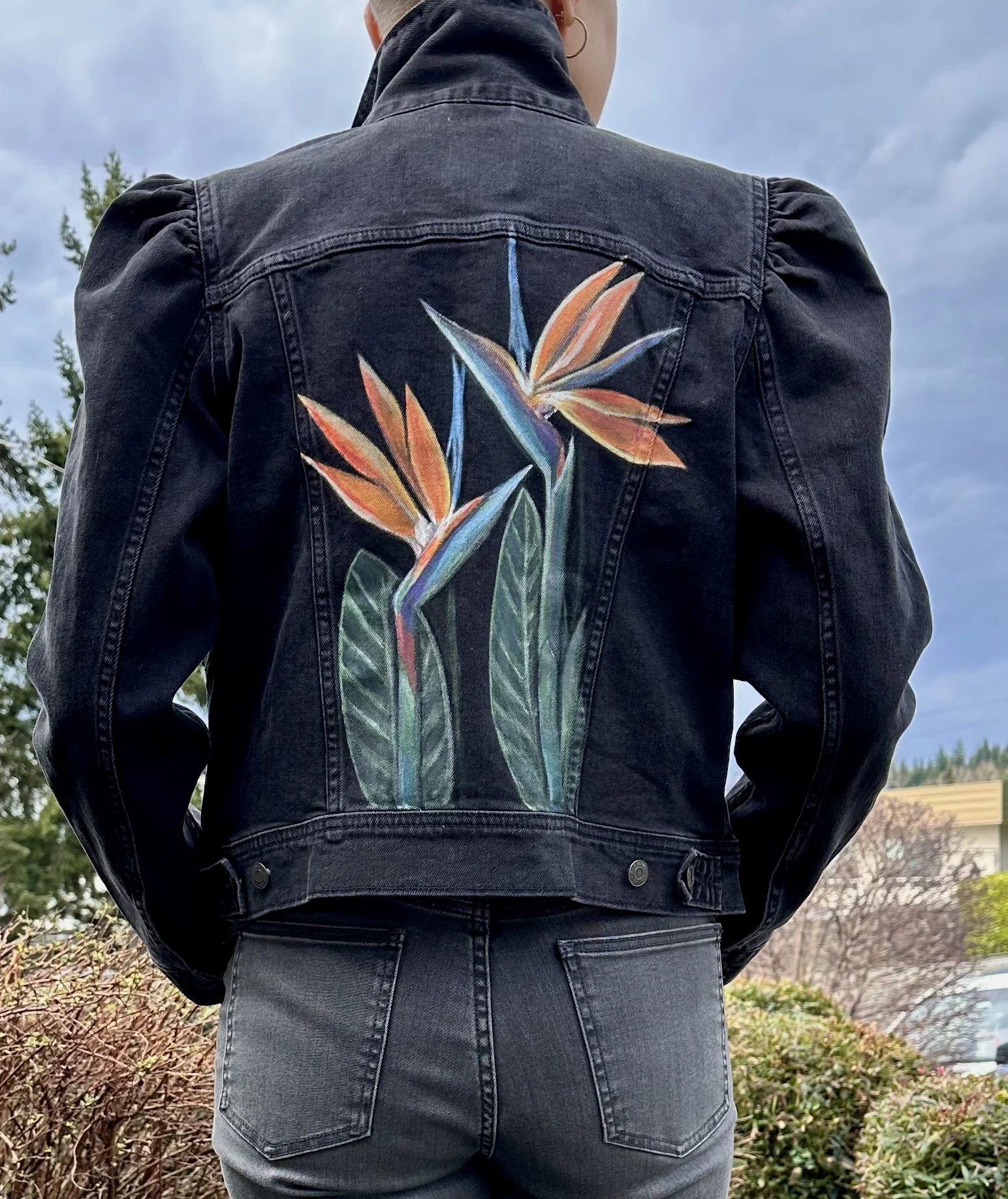 Vivid Strelitzia - Painted Denim Jacket