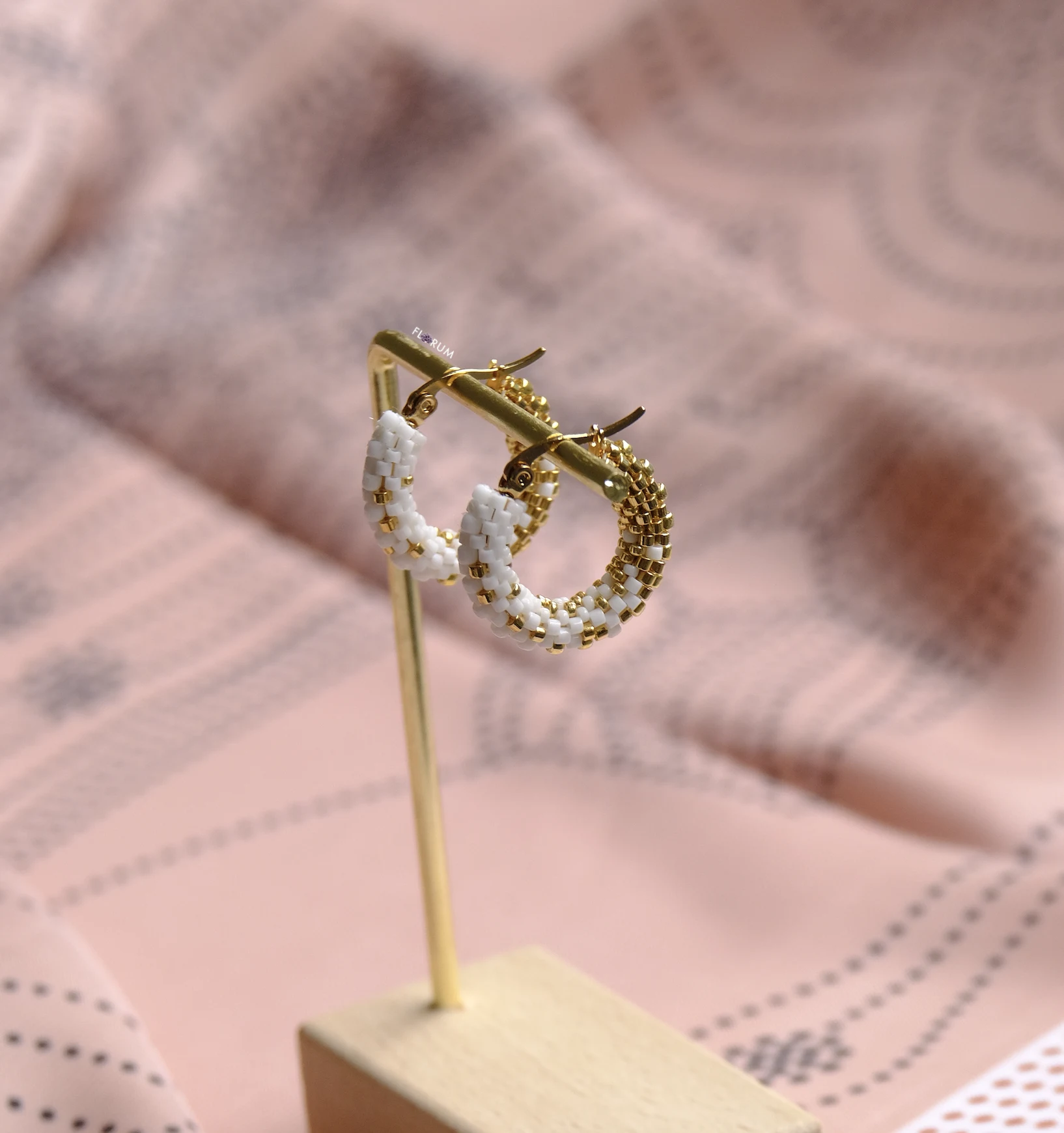 White-Gold Gradient Beaded Hoop Earrings
